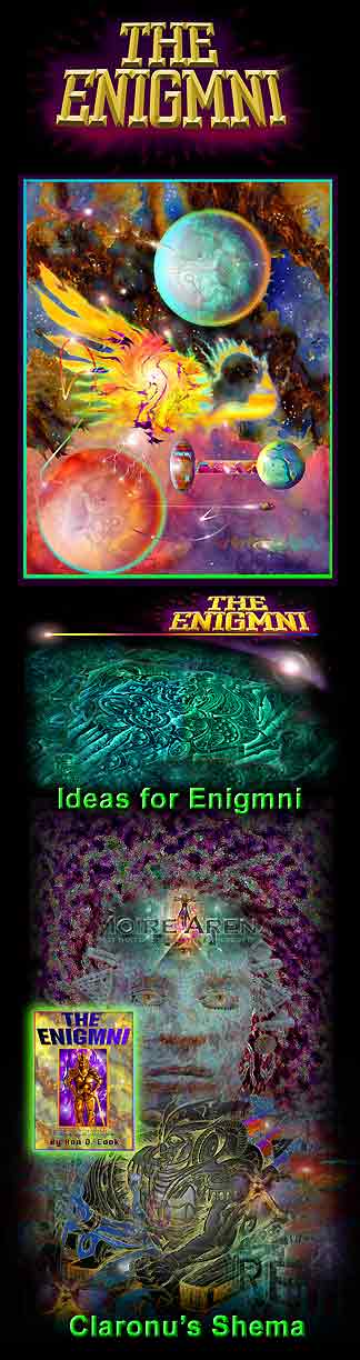 The Enigmni becomes an E-Book... When Cook began to teach at the university and on the secondary levels, he would tell a basic story to the students about how to develop materials for a story that would become a movie and perhaps a video game. The students were invited to create ideas about the storyline and thereby get a feel for the real world. In 1995 Cook began to get real serious about the book and actually started writing some of the book back then. It was during this time that someone invaded his computer and caused it to crash. Cook enlisted help from various sources to try to find who had invaded his system. Later a number of storylines came out in the form of movies that others thought were like his book. It was not. In 1998 the book came out on the net and was set up as a free read. Today, it is still on line and is still a free read. His next book will be the Moire Arena and it will follow after the first...The Enigmni. |