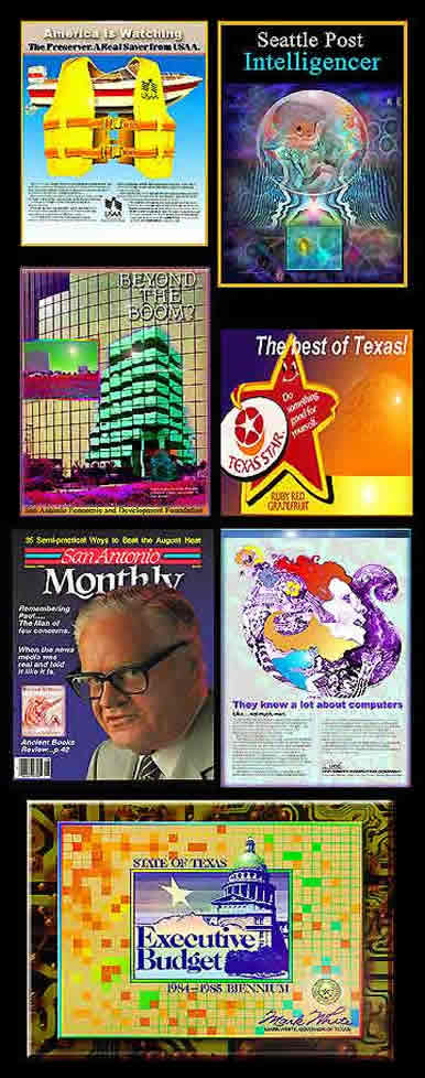 Interfacing with the Top... Over the years, Cook has worked with the top developers of many major projects. His expertise has grown due to career choices of being there when he was needed. In his youth, after graduation from high school, he was invited to go to work for the Texas Highway Department of Engineers as a surveyor and draftsman (They just came and got him the last day of school). Later he was offered a scholarship to Texas A&M for Engineering. Instead he opted for a degree in Communication Arts and paid for it himself. He graduated from Texas State University with one of the highest grades in his department. He later went to Dallas where he worked for the largest Graphics Studio in the Southwest. One of his clients was Ross Perot. His primary work was for Halliburton Industries. From there he went to work for International Silver as the Creative Director and Seminar Director for a book publisher. He delivered seminars all over the country at universities on the dictates of graphic communications. While there, he was promoted to a directors position on the management board. As a result of his seminars and talent, Angelo State University hired him to head the creative publications section of the News & Information department, a part of the President's Office. For four years, Cook learned from the best, President Lloyd D. Vincent, and Cook's supervisor and friend, Mike Ryan. The university grew by several thousand students during Cook and Ryan's stint in creating a new image of the West Texas university. The San Angelo Standard-Times hired Cook as its Assistant Publisher to redesign the entire "look" of the paper as a direct result of the redesign of the Angelo State publications and the success of the new marketing campaign he and Mike Ryan had developed. At the paper, Cook received recognition from Editor & Publisher for his redesign work. He also received the National Family Weekly Award for the materials he designed for the paper. He was asked to redesign several West Texas publications and his illustrations were sought by the Presidential Museum of Midland, Texas. Cook began to be contacted by newspapers as far away as New Bedford, Mass. and Miami, Fla. to redesign their metro news products. Instead, Cook went to San Antonio to work with Harte Hanks Communications and various Advertising Agencies as a communications consultant. In 1981 Cook started his own consulting firm and started freelancing with some of this nation's top firms. Most importantly, he was interfacing with the minds at the top, thereby making the marketing and advertising experience dynamic and expeditious.