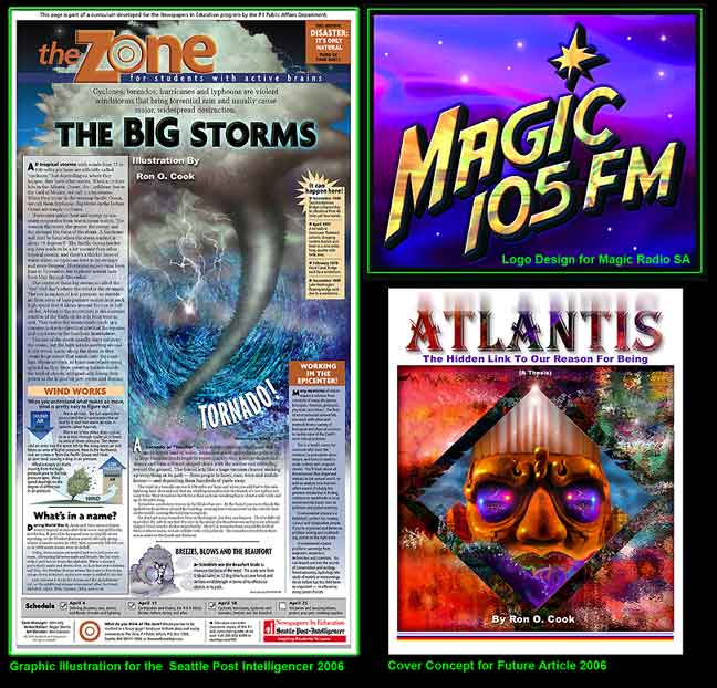 Illustration for the worldwide web is becoming the most important forum for many designers and illustrators. With the improvements in resolution and software, browsers can offer the practitioner a place to show his wears. Companies who utilize the new and amplified means of selling ideas are finding the new illustrations intellectually deep and fantastically powerful in attracting the mind of the more youthful clientele. Many authors are putting their books up on line for readers to get amplified versions of their works. Some are incorporating movement in their representations to amplify visual impact at web sites. Cook will certainly be exploring this new area since he has one e-book on line and will be adding others to this site in the future. He believes it is an evolving forum for future creators. It will be everything all rolled into one media site or what he calls "Mirror-Realms" -- instant gratification. |
